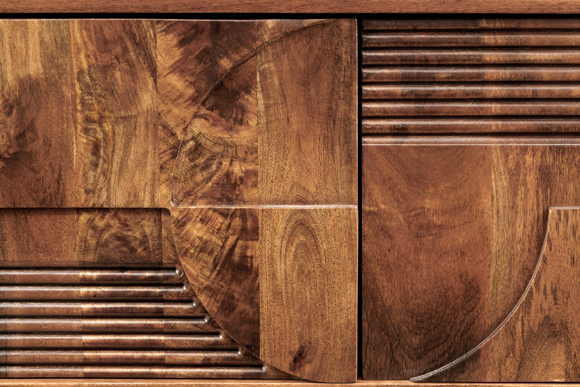 Szafka RTV ART DECO 200 cm – lite drewno mango / front 3D / brąz (smoked brown)
