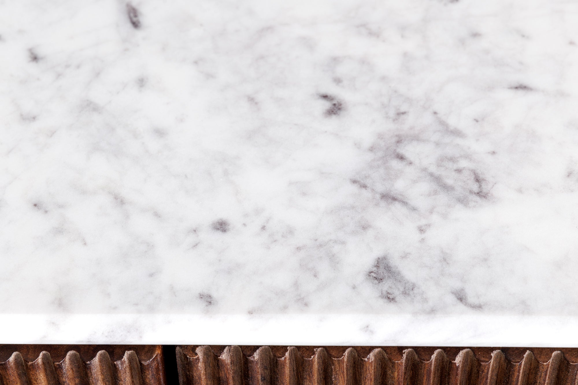 Naturalne materiały sprawiają, że każdy egzemplarz jest unikatowy – zarówno drewno mango, jak i marmur mają indywidualne usłojenie oraz strukturę, co podkreśla ekskluzywny charakter mebla.