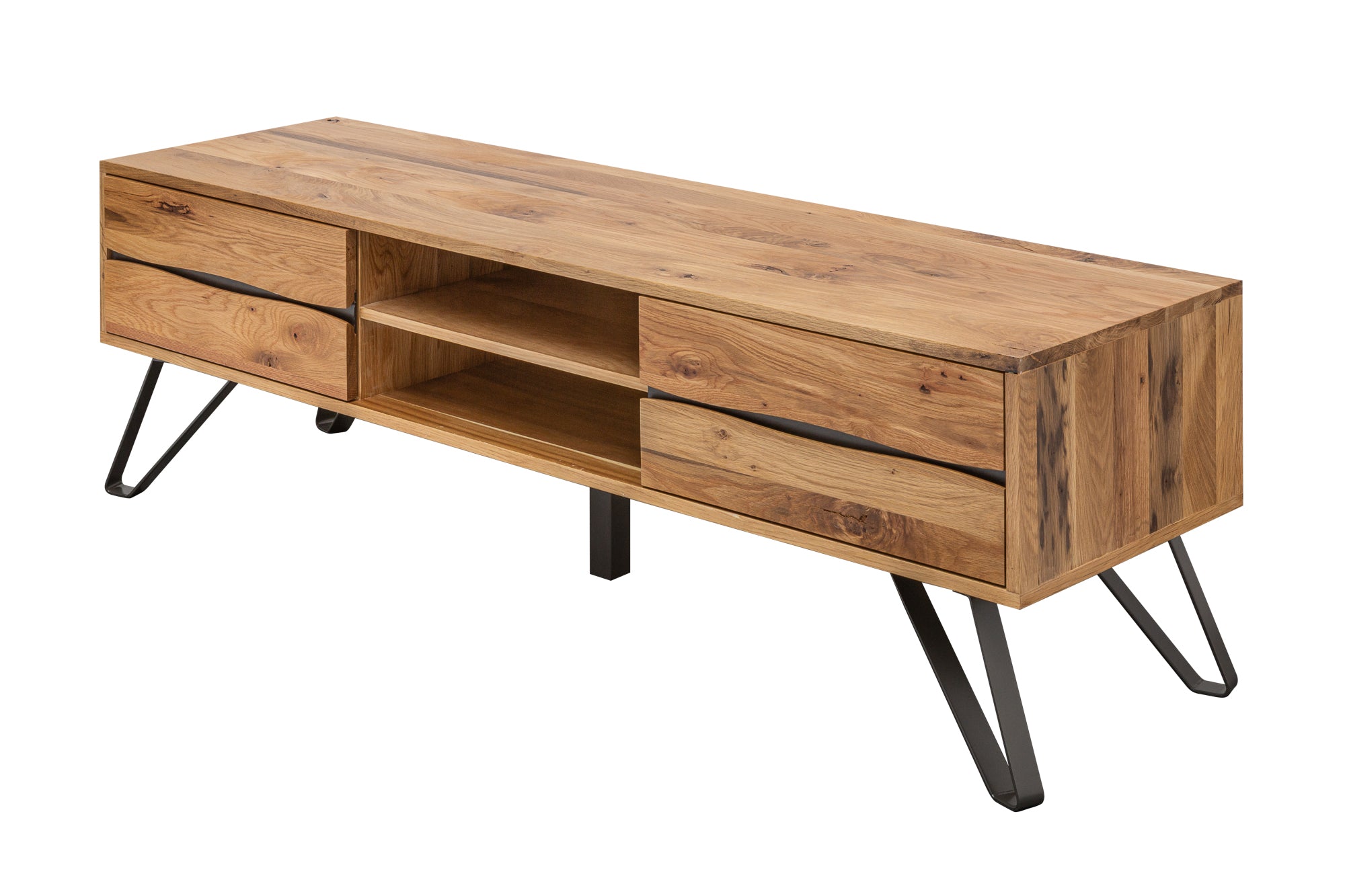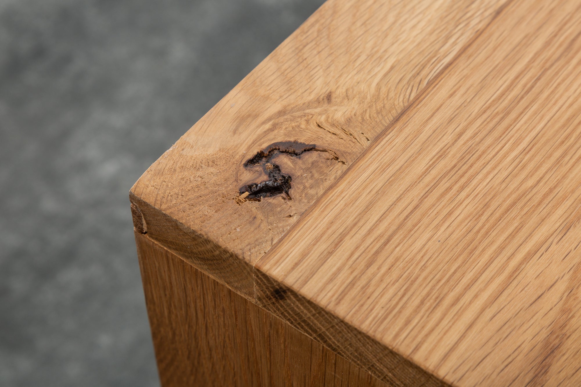 Szafka RTV LIVING EDGE 160 cm to solidny, naturalny mebel o wyrazistym charakterze, który łączy autentyczne drewno z nowoczesną, loftową formą. Wykonana z dzikiego dębu, wyróżnia się olejowaną powierzchnią oraz mocnym, naturalnym usłojeniem, które nadaje każdemu egzemplarzowi indywidualny wygląd.