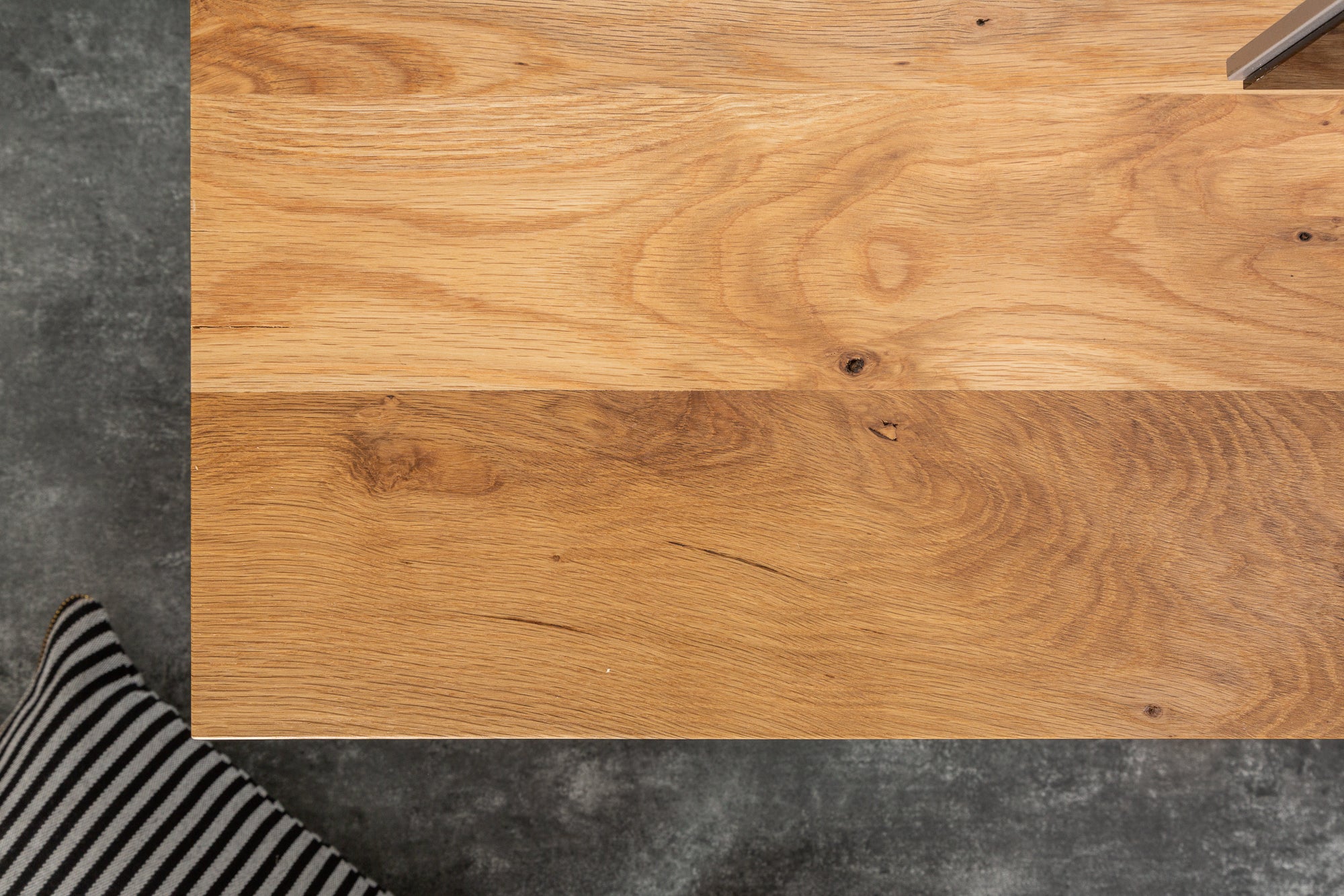 Najbardziej charakterystycznym elementem jest efekt „live edge”, czyli zachowana naturalna linia drewna. Widoczne sęki, pęknięcia i nieregularności są celowym elementem designu, który podkreśla autentyczność i sprawia, że każdy egzemplarz jest unikalny.