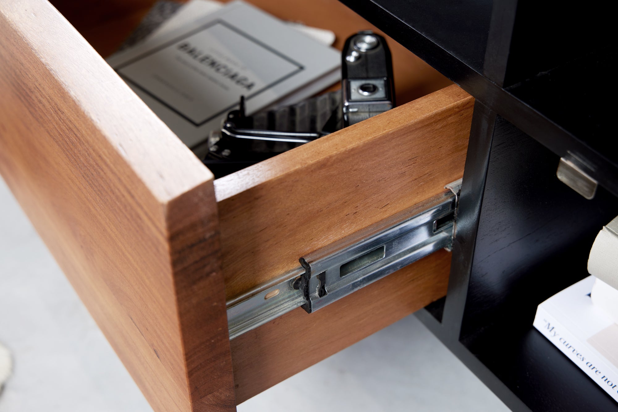 Połączenie ciepłego odcienia drewna z ciemnym korpusem i metalową podstawą tworzy mocny kontrast w stylu loftowym. To mebel, który doskonale sprawdzi się w nowoczesnych, industrialnych oraz naturalnych wnętrzach.