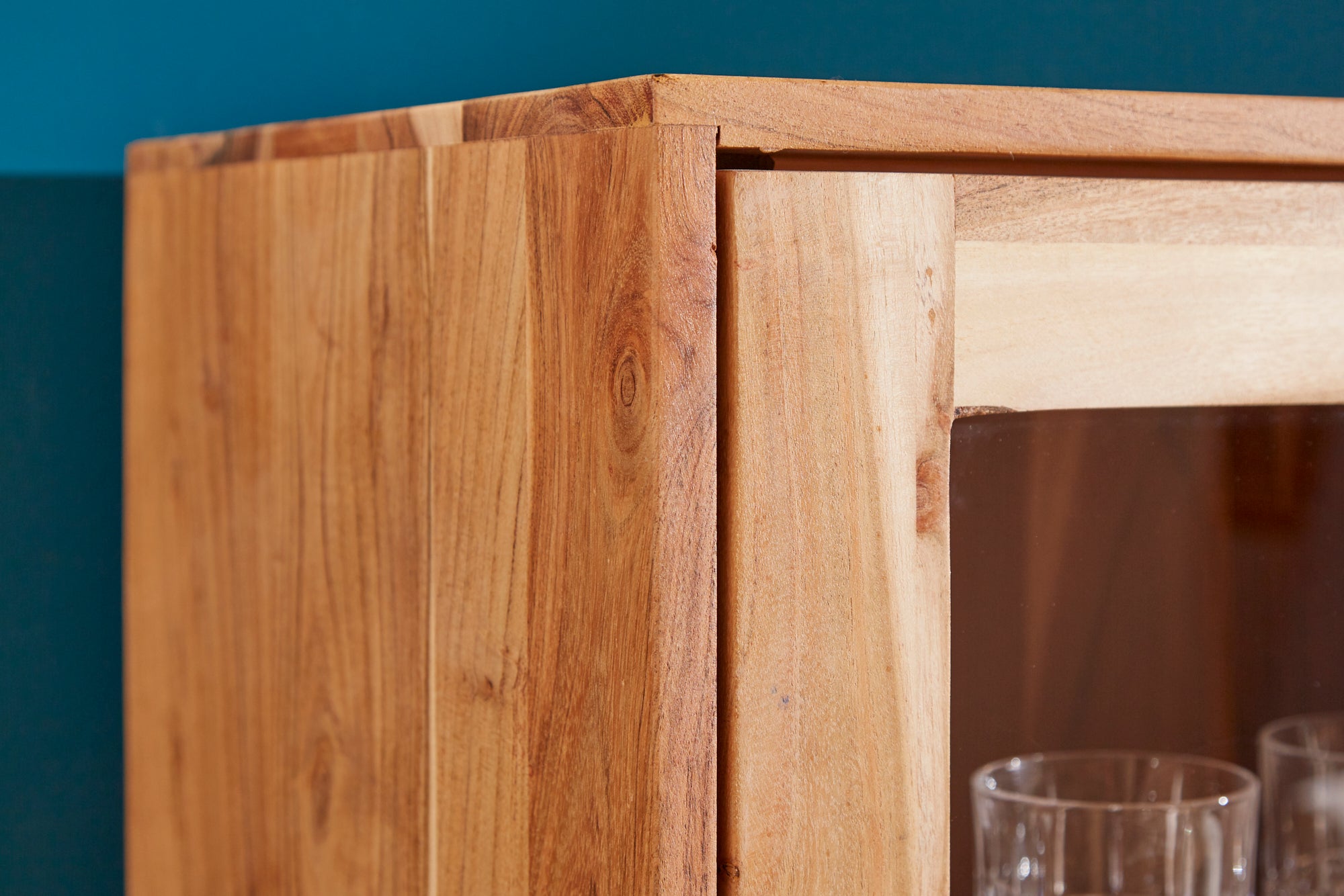 Witryna MYSTIC LIVING 140 cm to elegancki i funkcjonalny mebel, który łączy naturalne drewno z lekką, nowoczesną formą. Wykonana z litego drewna akacjowego, zachwyca ciepłym odcieniem oraz wyraźnym usłojeniem, które nadaje wnętrzu przytulności i autentycznego charakteru.