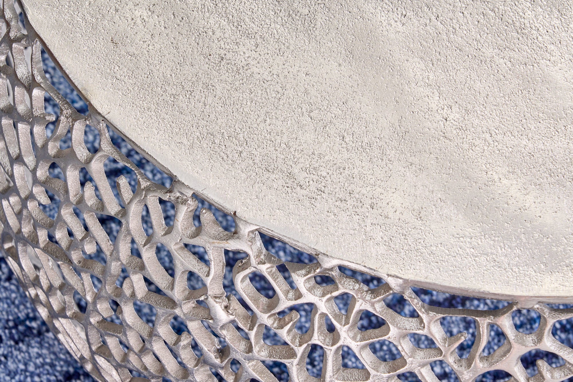 Dekoracyjny komplet stolików kawowych marki Invicta Interior inspirowany kształtem liścia. Srebrne wykończenie oraz rzeźbiarska forma nadają meblom elegancki i wyrazisty charakter, dzięki czemu pełnią funkcję zarówno użytkową, jak i ozdobną.