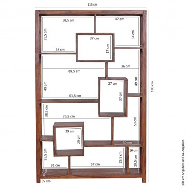 Regał stojący z litego drewna Sheesham – 180 × 115 cm – z 3 otwartymi kostkami
