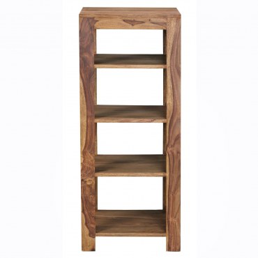 Stylowy regał z litego drewna Sheesham to funkcjonalny mebel o wyjątkowym wyglądzie. Dzięki czterem przestronnym półkom oferuje sporo miejsca na książki, dekoracje lub inne drobiazgi. Unikalna struktura drewna oraz ręczne wykonanie czynią każdy egzemplarz niepowtarzalnym.