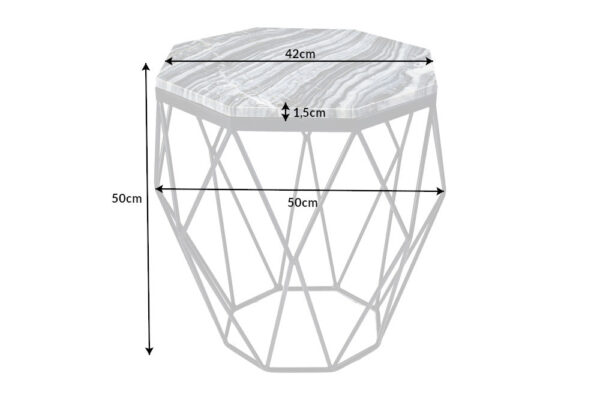 Stolik kawowy NOBLE 62 cm – szary marmur / srebrne nogi – designerski / glamour 38011