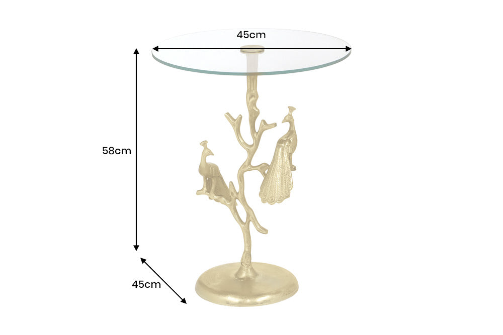 Stolik kawowy WILDLIFE PEACOCK 60 cm – złoty / szkło – designerski / paw 44829