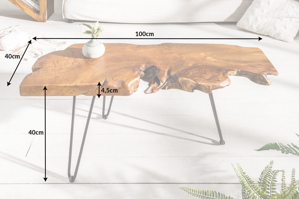 Stolik kawowy WILD 100 cm – lite drewno teak / metalowe nogi 38797