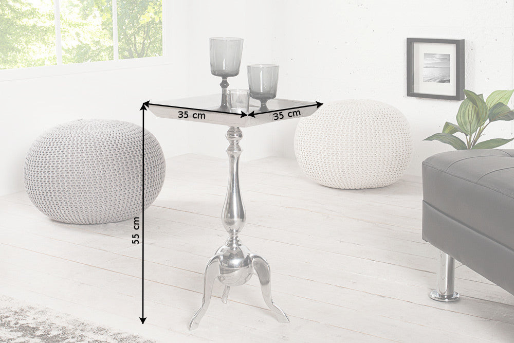 Stolik boczny JARDIN 55 cm kwadratowy srebrny – styl glamour / barok 35725