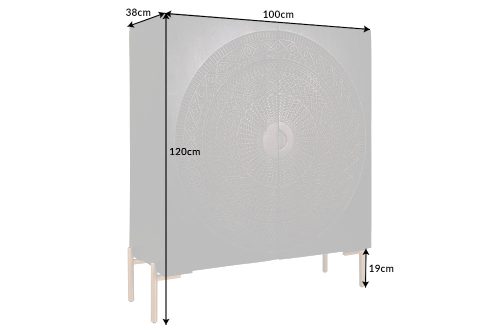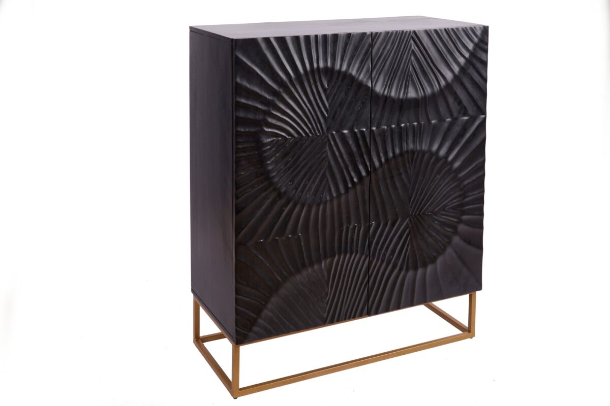 Komoda wysoka GOLDEN SUNSET 120 cm – czarne mango / złoty ornament / 41303