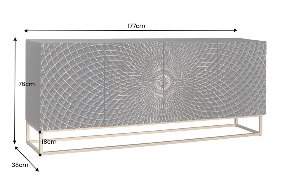Komoda SOLARIS 177 cm – mango czarno złote / front geometryczny 3D / 44652