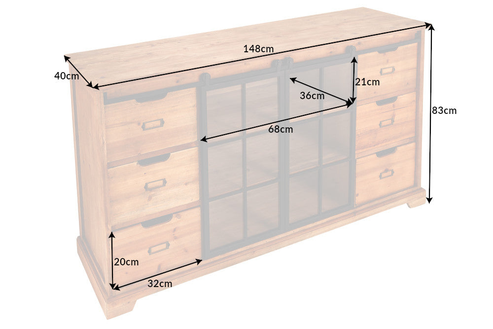 Komoda HERITAGE 150 cm – drewno sosnowe / przesuwne drzwi / szkło / 40881