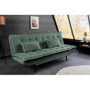 Nowoczesna, wygodna i efektowna sofa z funkcją spania. Model JAZZ w zielonej tkaninie sztruksowej to mocny akcent w salonie – idealny, jeśli chcesz dodać wnętrzu koloru, a jednocześnie zachować elegancki, prosty design. Miękka tapicerka cord i smukłe czarne nóżki nadają sofie lekkości i charakteru.
