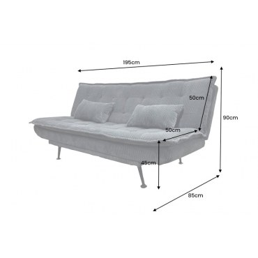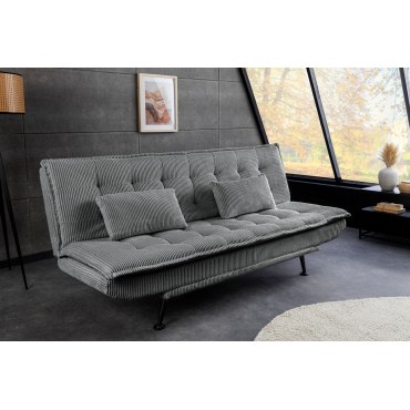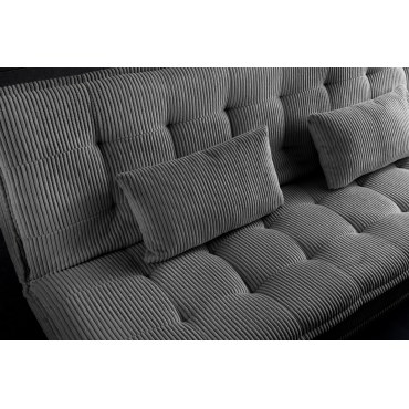 Stylowa, wygodna i bardzo praktyczna sofa z funkcją spania. Model JAZZ w szarej tkaninie sztruksowej (cord) to świetny wybór do nowoczesnych, loftowych i skandynawskich wnętrz. Neutralny szary kolor łatwo dopasować do innych mebli i dodatków, a pionowe przeszycia oraz smukłe czarne nóżki nadają sofie lekkości i eleganckiego charakteru.