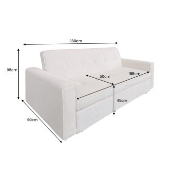 Model został zaprojektowany z myślą o komforcie — szerokie siedzisko zapewnia wygodne miejsce do odpoczynku dla dwóch osób, a dzięki funkcji spania sofa w szybki sposób zamienia się w przestronne łóżko. To idealne rozwiązanie, gdy potrzebujesz dodatkowego miejsca do nocnego wypoczynku dla gości, bez rezygnowania z estetyki wnętrza.