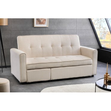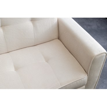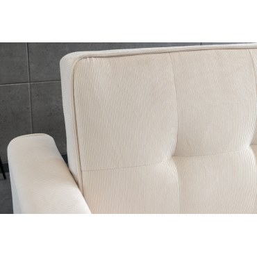 Stylowa sofa SMART to połączenie nowoczesnego designu i praktycznych rozwiązań do codziennego użytkowania. Jej prosta, elegancka forma została podkreślona miękką tkaniną cord w kolorze beżowym, która nadaje wnętrzu ciepły i przytulny charakter. Sofa doskonale sprawdzi się zarówno w salonie, jak i w pokoju gościnnym czy mieszkaniu typu studio.