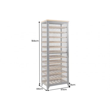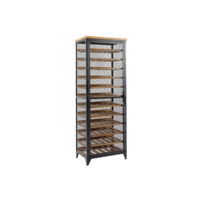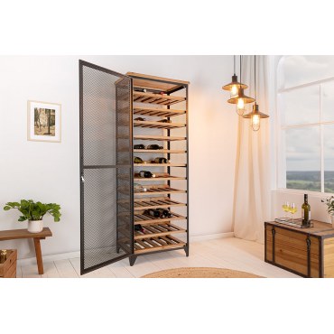 Regał na wino BODEGA 185 cm to funkcjonalny mebel do przechowywania i ekspozycji ulubionych win. Połączenie naturalnego drewna jodłowego z czarną, stalową ramą daje solidny i ponadczasowy efekt w stylistyce loft. Kratownice mieszczą do 72 butelek, zapewniając im stabilną pozycję i wygodne sortowanie według roczników czy szczepów. Idealny zarówno do wnętrz domowych, jak i do użytku komercyjnego.