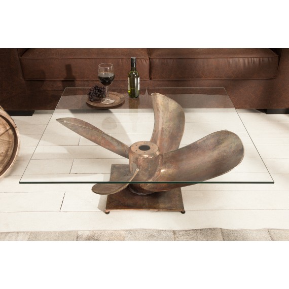 Materiał: podstawa stołu ze stopu metalu i aluminium jest wzorowana na śmigle statku.