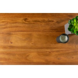 Wykonany z litego drewna akacjowego o grubości 35 mm z naturalną krawędzią drzewa i ramą z metalu malowanego proszkowo w surowym industrialnym stylu.