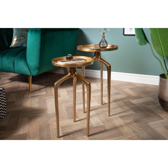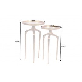 Orientalne stoliki wykonane z błyszczącego aluminium.