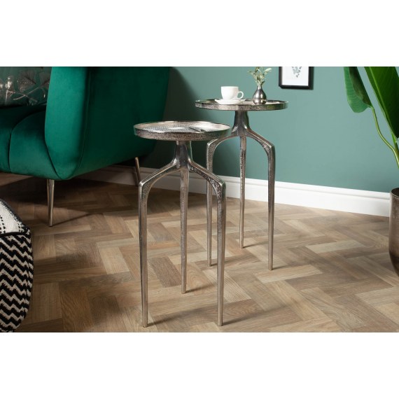 Orientalne stoliki wykonane z błyszczącego aluminium.