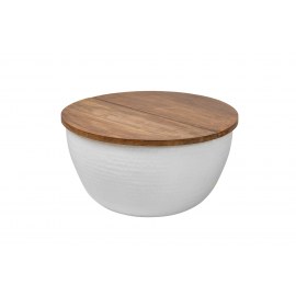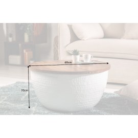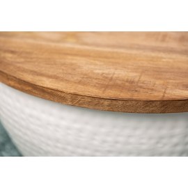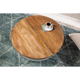 Blat z drewna mango można otworzyć z jednej strony, a korpus służy jako schowek.