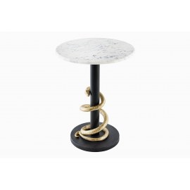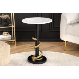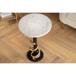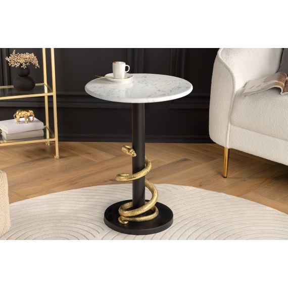 Stolik boczny WILDLIFE SNAKE to prawdziwe dzieło sztuki, które łączy w sobie elegancję i odrobinę dzikiego charakteru. Podstawę stolika zdobi misternie wykonana złota rzeźba w formie wijącego się węża, która przyciąga uwagę swoim detalem i wyrazistością. Okrągły blat z prawdziwego czarno-białego marmuru dodaje luksusowego akcentu, doskonale kontrastując z artystyczną podstawą
