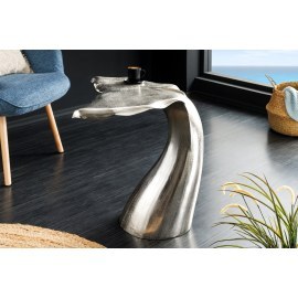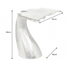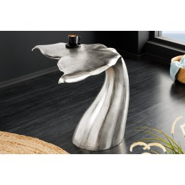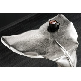 Stolik boczny WILDLIFE WALFLOSSE to wyjątkowy mebel, który łączy funkcjonalność z artystycznym designem inspirowanym naturą. Podstawa w kształcie płetwy wieloryba i srebrne wykończenie nadają mu luksusowego i niebanalnego charakteru.