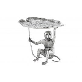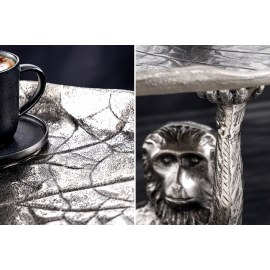 Stolik boczny WILDLIFE MONKEY to oryginalny mebel, który zachwyca swoim unikalnym designem inspirowanym naturą. Srebrna podstawa w kształcie małpy dodaje wnętrzu charakteru i staje się wyjątkowym akcentem dekoracyjnym, który przyciąga wzrok.