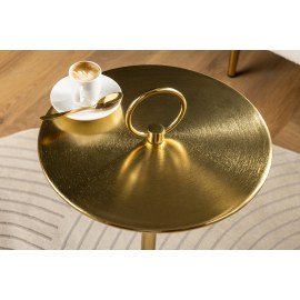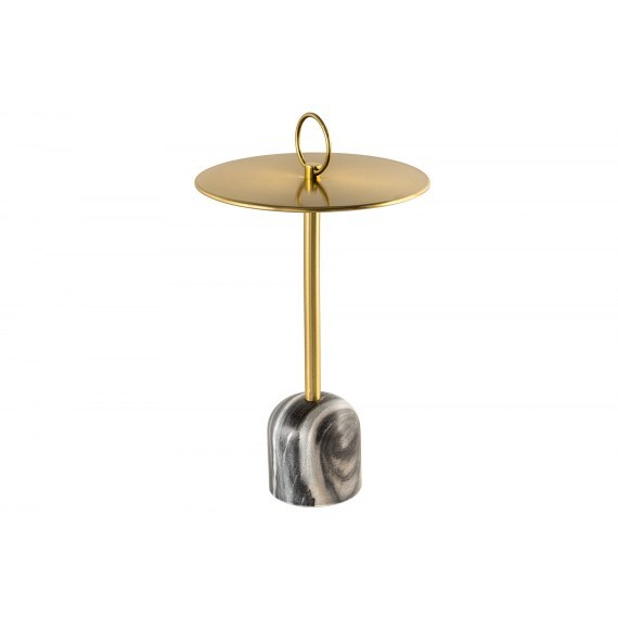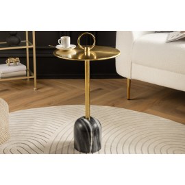 Stolik boczny ELEGANCE to doskonałe połączenie klasycznego stylu i nowoczesnej funkcjonalności. Blat z czarnego marmuru w formie tacy osadzony na smukłej, złotej podstawie nadaje wnętrzu elegancji i wyrafinowania, idealnie komponując się z luksusowymi aranżacjami.