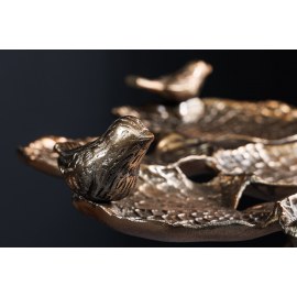 Stolik boczny BIRDS to oryginalny mebel, który łączy funkcjonalność z artystycznym designem. Wykonany z mosiądzu, ozdobiony delikatnymi rzeźbami ptaków, wprowadza elegancję i unikalny styl zarówno do wnętrz, jak i przestrzeni na świeżym powietrzu.