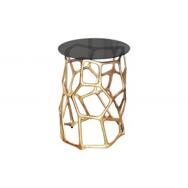 Stolik boczny LIQUID GEOMETRIE to stylowy i nowoczesny mebel, który wyróżnia się geometrycznym designem i eleganckim połączeniem materiałów. Czarny blat z hartowanego szkła i złota metalowa podstawa tworzą luksusowy akcent, idealny do wnętrz w stylu glamour, nowoczesnym lub art déco.