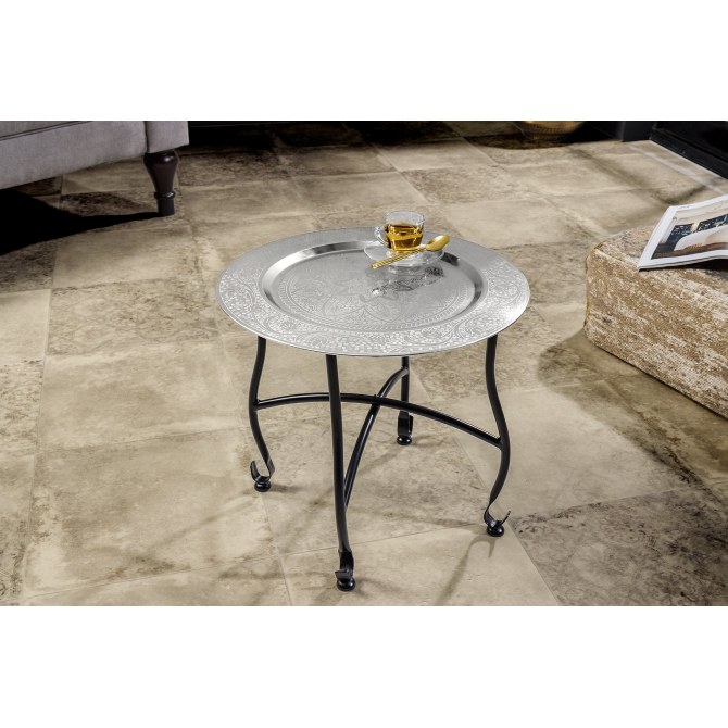 Stolik MARRAKESCH to uroczy i funkcjonalny mebel, który emanuje orientalnym wdziękiem. Dzięki misternie zdobionej, zdejmowanej tacy i składanej podstawie, jest nie tylko dekoracyjny, ale także praktyczny. Idealny do wnętrz w stylu boho, orientalnym lub nowoczesnym.