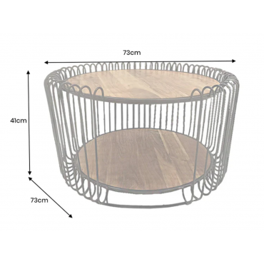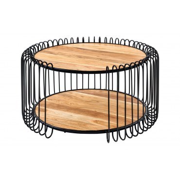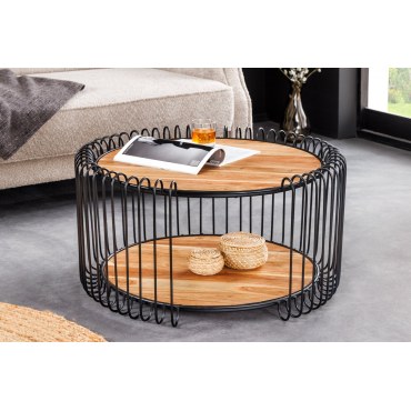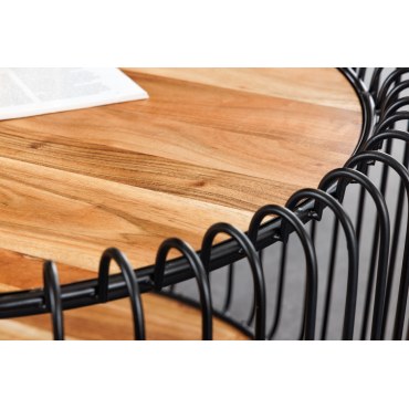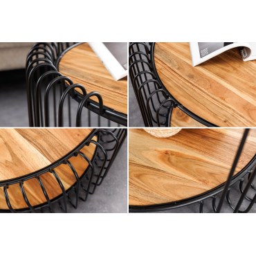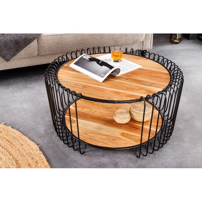 Stolik kawowy TRUE ELEMENTS 70 cm – czarny stelaż, drewno akacjowe
