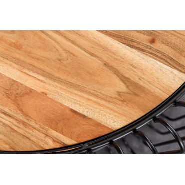 Stolik kawowy TRUE ELEMENTS to połączenie naturalnego piękna drewna akacjowego z nowoczesnym, industrialnym designem. Okrągły blat o wyjątkowej strukturze drewna osadzony jest na solidnym, czarnym metalowym stelażu, co nadaje meblowi elegancki i ponadczasowy charakter.