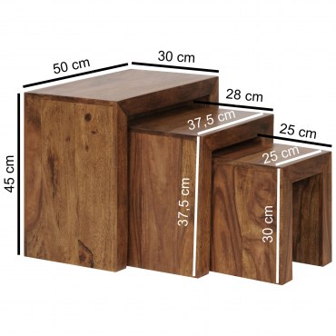 Zestaw 3 stolików z litego drewna Sheesham – naturalna elegancja i funkcjonalność