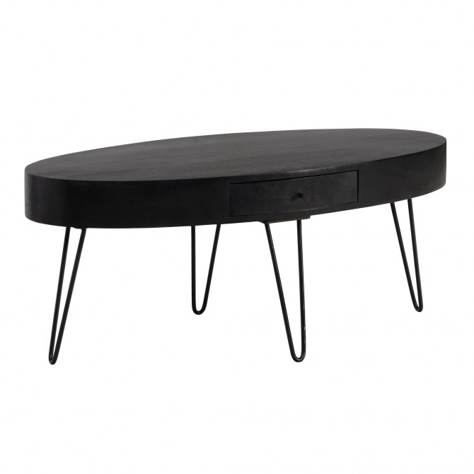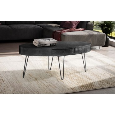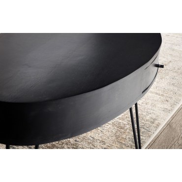 Nowoczesny stolik kawowy, który łączy w sobie naturalne piękno drewna Sheesham i elegancję metalowych nóg w stylu hairpin. Charakterystyczne usłojenie drewna oraz ręczne wykonanie sprawiają, że każdy egzemplarz jest jedyny w swoim rodzaju. Dodatkowe dolne półka zapewnia praktyczną przestrzeń do przechowywania.
