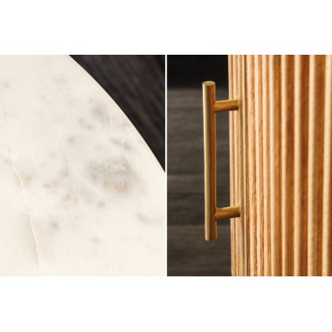 Stolik kawowy TRES CHIC to połączenie naturalnego piękna i elegancji w nowoczesnym wydaniu. Okrągły blat wykonany z prawdziwego białego marmuru nadaje meblowi luksusowego charakteru, a podstawa z litego drewna mango w naturalnym odcieniu wprowadza do wnętrza ciepło i przytulność.