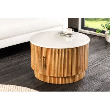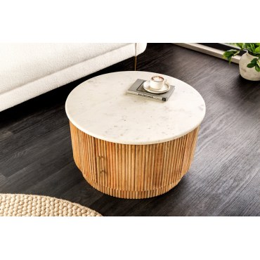 Stolik kawowy TRES CHIC Ø60 cm – Drewno Mango & Biały Marmur