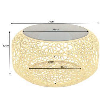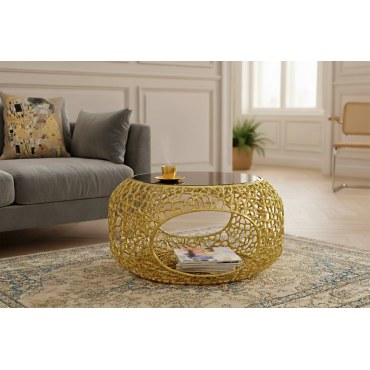 Elegancki i stylowy stolik kawowy SPIN 75 cm łączy luksusowy wygląd z funkcjonalnością. Okrągły blat z czarnego szkła hartowanego podkreśla nowoczesny charakter mebla, natomiast złota metalowa podstawa przyciąga uwagę i tworzy efektowny detal we wnętrzu. Stolik doskonale sprawdzi się w salonie, pokoju dziennym, strefie wypoczynkowej lub w eleganckim biurze.