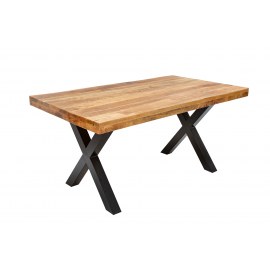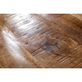 Blat wykonany z litego drewna mango imitującego deskę.