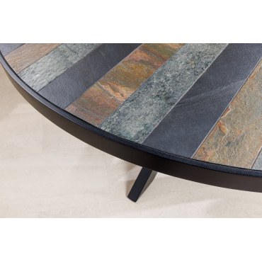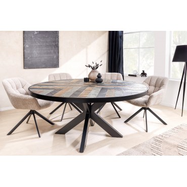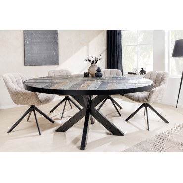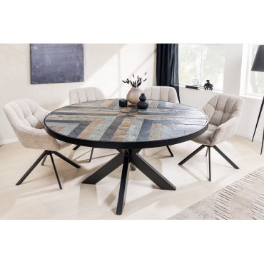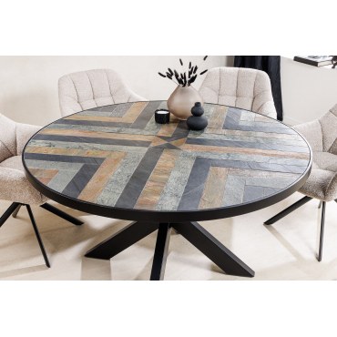Stół MOUNTAIN SOUL to niezwykłe połączenie naturalnego drewna akacjowego z efektownym blatem w kamiennym wyglądzie. Okrągła forma o średnicy 140 cm sprawia, że jest idealnym wyborem do jadalni, zapewniając komfortowe miejsce dla kilku osób. Wielokolorowy efekt kamienia nadaje mu wyjątkowego charakteru, a stabilna podstawa gwarantuje trwałość i solidność.