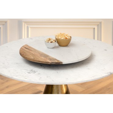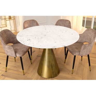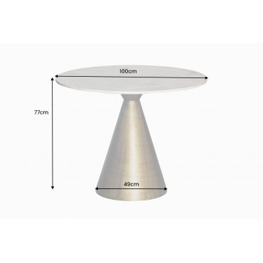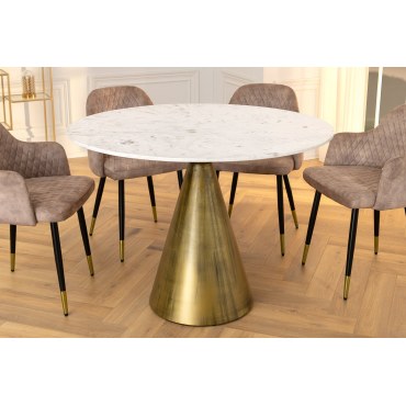 Stół jadalniany ELEGANCIA Ø100 cm – biały marmur i miedziana podstawa