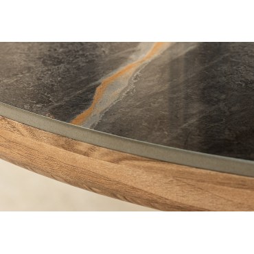 Materiał: podstawa – płyta drewnopochodna fornirowana orzechem; blat – ceramika w szary efekt marmuru, grubość 50 mm