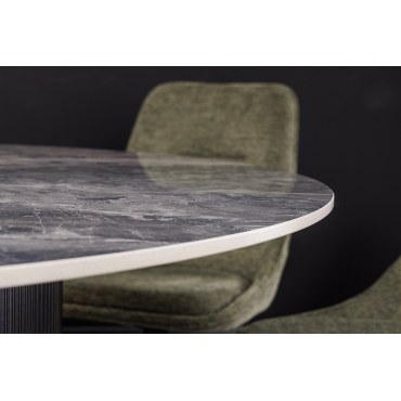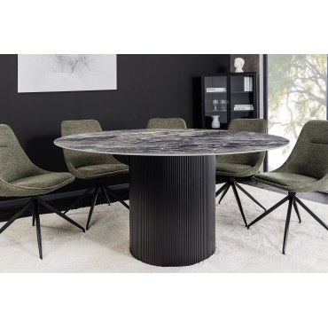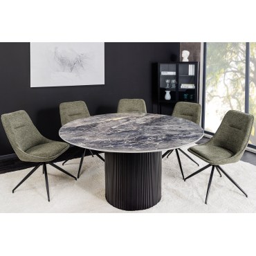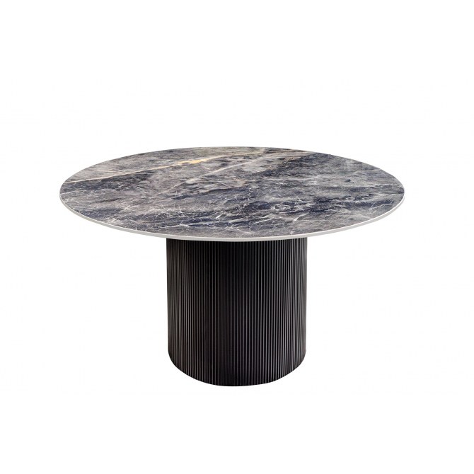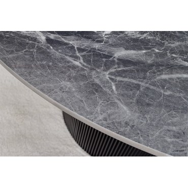 Elegancki i nowoczesny stół UNIQUE to idealne połączenie stylu i funkcjonalności. Okrągły blat wykonany z ceramiki w kolorze szarego marmuru nadaje wnętrzu luksusowego charakteru, a ciemny stelaż dodaje całości wyrazistości.