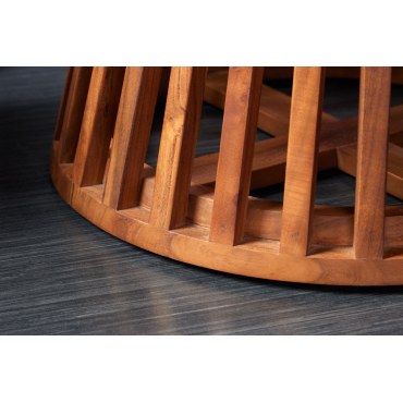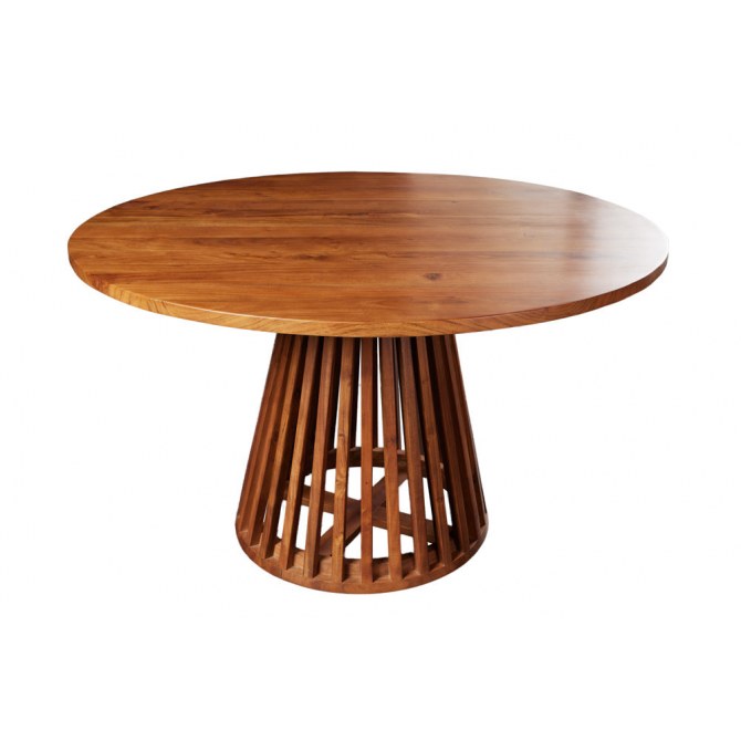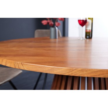 Elegancki, okrągły stół jadalniany wykonany z akacji — piękno naturalnego drewna wyeksponowane przez delikatne lakierowanie. Świetnie wpisuje się w przestrzenie o stylu boho, skandynawskim lub rustykalnym, ale również będzie ciekawym akcentem w nowoczesnym wnętrzu. Świetny do spożywania posiłków, spotkań rodzinnych, kawy z przyjaciółmi.