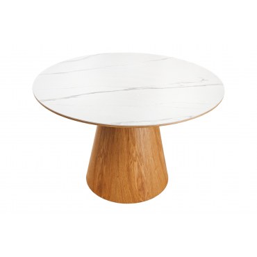 Średnica 120 cm daje komfortową przestrzeń dla 4–6 osób, a kształt okrągły sprzyja rozmowom i wspólnemu spożywaniu posiłków.