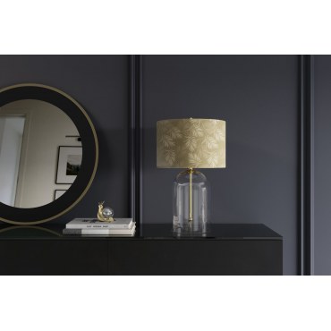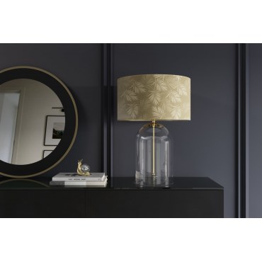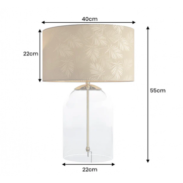 Lampa stołowa CLASSICO 55 cm to połączenie klasycznej elegancji z nowoczesnym designem. Jej smukła, przezroczysta szklana podstawa w kolorze złota przyciąga wzrok, stanowiąc wyrazisty punkt każdej aranżacji. Biały abażur z tkaniny miękko rozprasza światło, tworząc przytulną atmosferę w salonie, sypialni czy biurze.