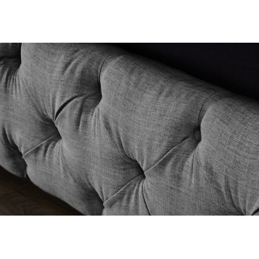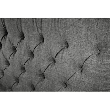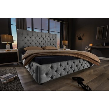 Łóżko PARIS to kwintesencja stylu Chesterfield – wysokie, pikowane wezgłowie ozdobione dekoracyjnymi guzikami tworzy luksusowy akcent w każdej sypialni. Tapicerka z szarego lnu (100% poliester) wprowadza subtelny, naturalny charakter, który doskonale pasuje do wnętrz zarówno nowoczesnych, jak i klasycznych. Całość oparta jest na solidnej ramie z drewnianymi nogami, zapewniając trwałość i stabilność.