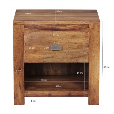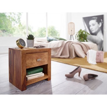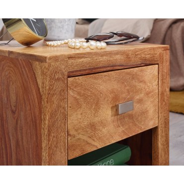 Ten urokliwy stolik nocny zachwyca wyjątkową, naturalną strukturą drewna Sheesham oraz praktycznym, klasycznym designem. Idealny do przechowywania drobiazgów dzięki pojemnej szufladzie i dodatkowej półce, która zapewnia jeszcze więcej miejsca na niezbędne przedmioty.